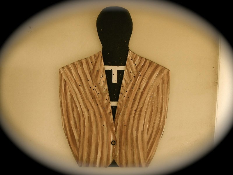 909. A target in a jacket. 2009. acrylic on cardboard. 86x58cm.